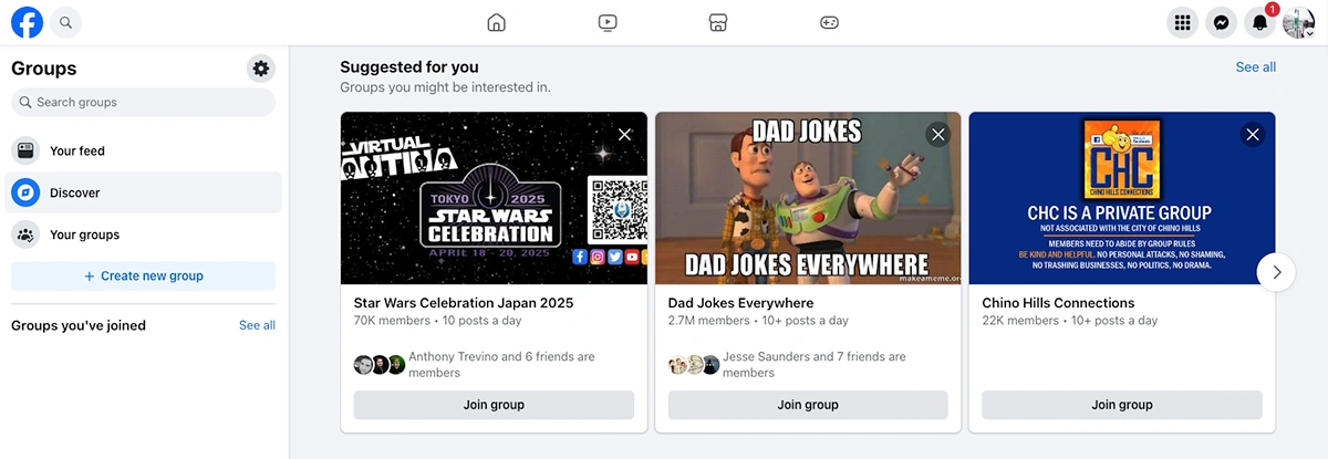 The Facebook algorithm doesn't just prioritize posts—it actively suggests new content you may like. These recommendations appear in sections like the Explore tab and Group suggestions, helping you discover fresh creators, groups, or posts.