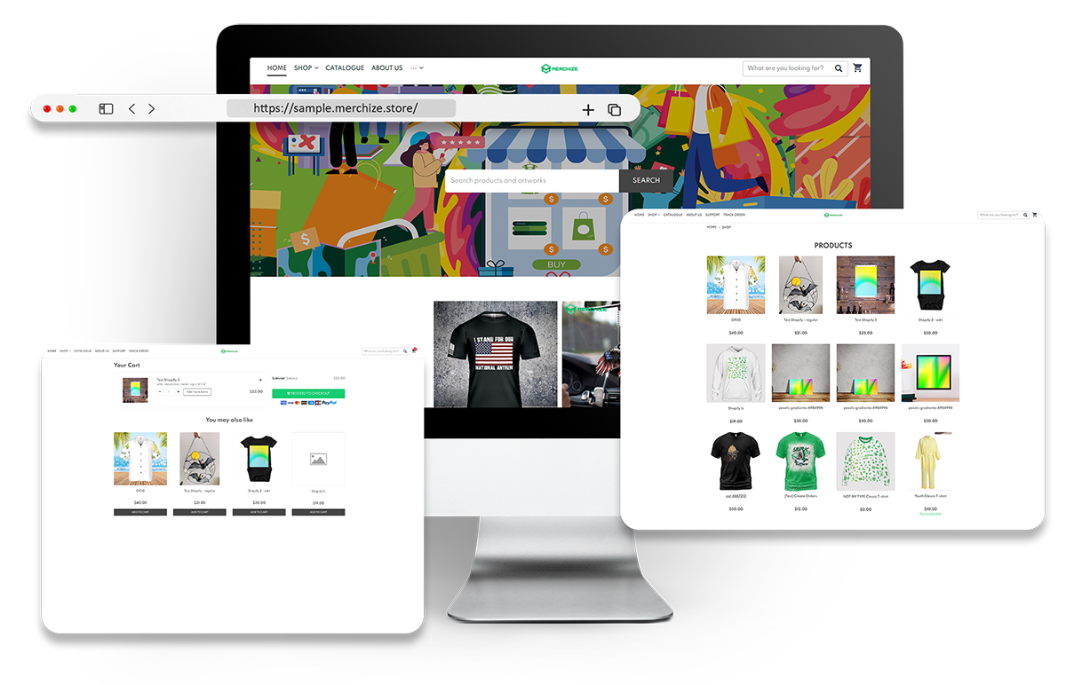 Merchize storefronts are designed specifically for print-on-demand, so they integrate seamlessly with the platform's fulfillment system, meaning your orders go straight into production without any extra setup or syncing required.