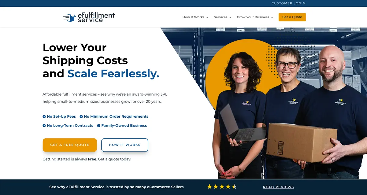 eFulfillment Service is an excellent choice for online businesses just starting out, thanks to its lack of order minimums and long-term contracts and competitive pricing for fulfillment and storage.