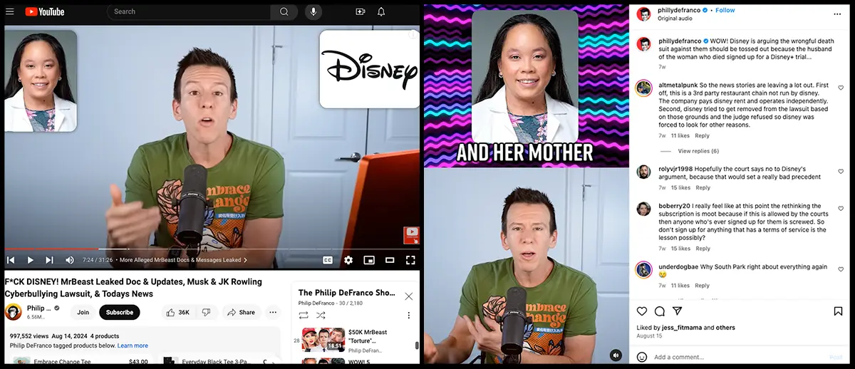 For instance, YouTuber and commentator Philip DeFranco utilizes his other social media platforms like Instagram to share clips of his YouTube videos. These clips, which DeFranco shares in his posts and Stories, highlight major news stories that within his videos that he feels will grab his audience's attention.