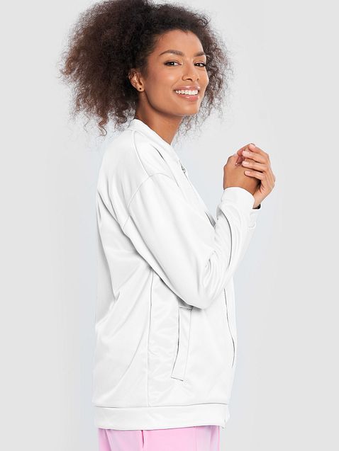 The fabric has a lovely gloss and the zipper is notably sturdy. The print quality is great, even using vibrant colors. The fit is comfortable. The jacket is on the thinner side, but I prefer using this on cooler evenings.