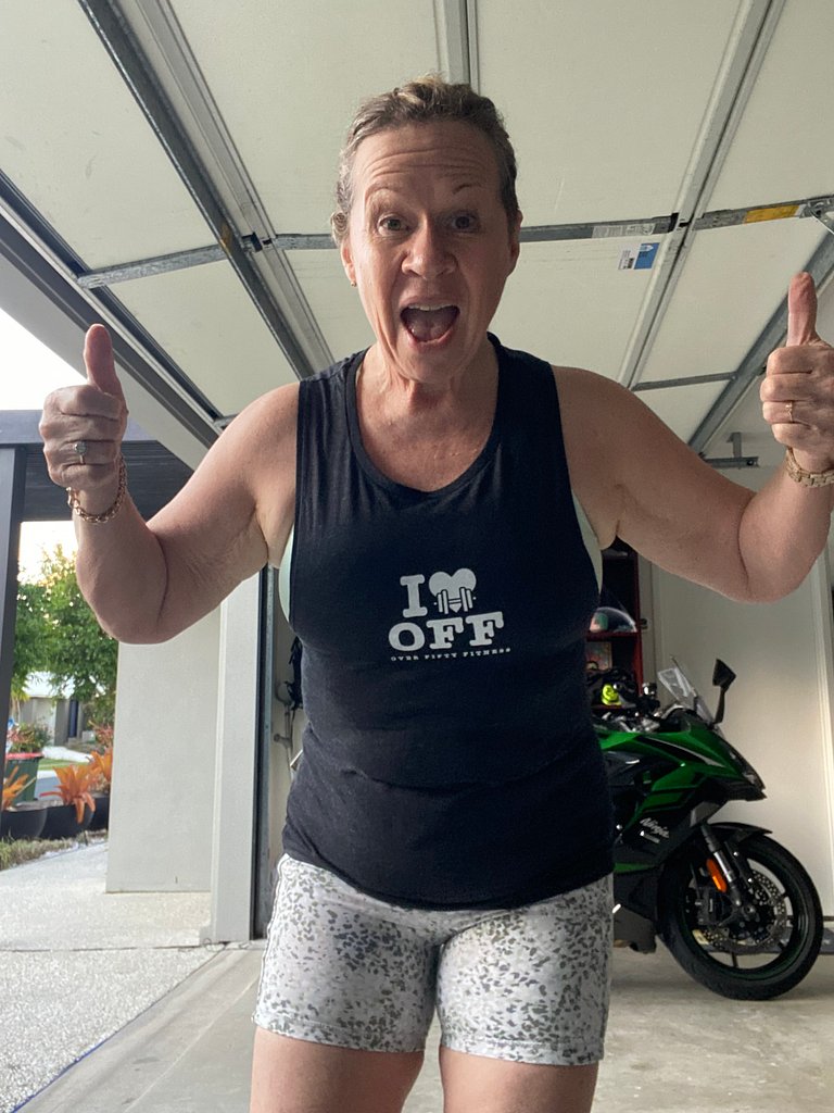 Can never be without some great workout tanks! The charcoal is a great colour that goes with everything. True to size and well made. And, of course, I LOVE repping Over Fifty Fitness!
